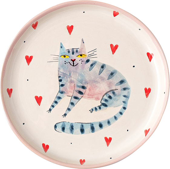 Этот котик на блюдце ручной работы украл наши сердца, а вот небольшой перекус или любимые кольца оставит в целости и сохранности.