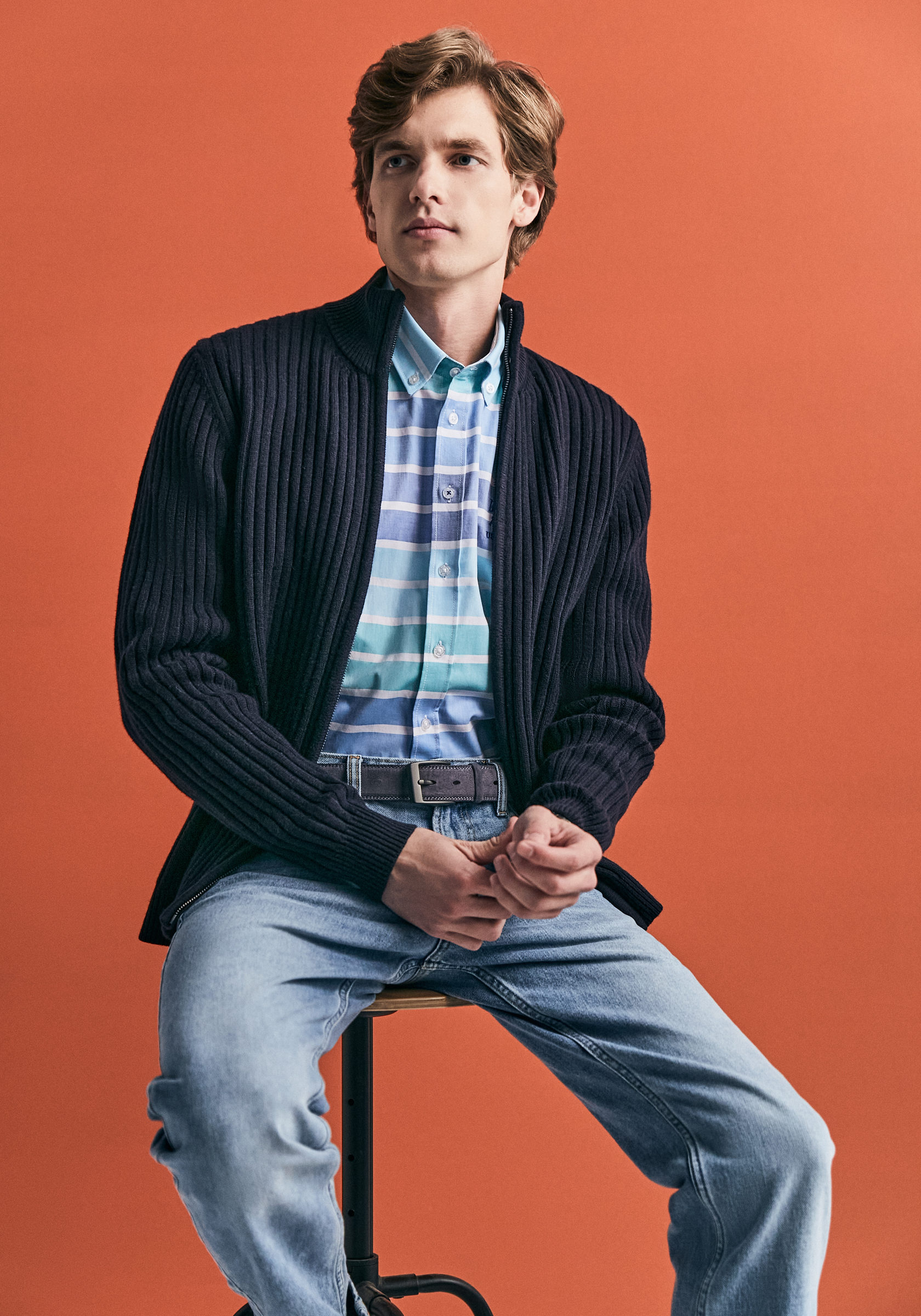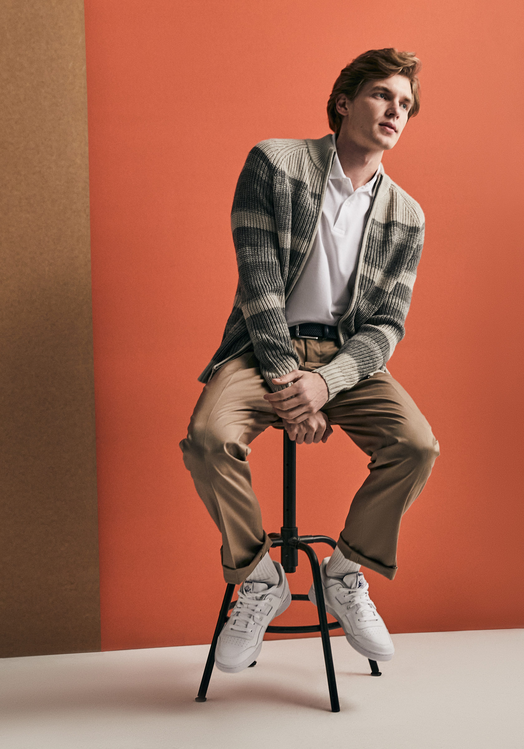 Еще один образ с кардиганом — в стиле американских студентов из 50-х. Нашивки с эмблемами колледжа — элемент необязательный, а вот рубашки в клетку или из оксфорда нужны непременно. К ним можно добавить широкие чиносы или брюки со стрелками и классические кеды. Кроме того, к такому образу подойдут аксессуары в стиле ретро: вязаный галстук и очки в роговой оправе.
