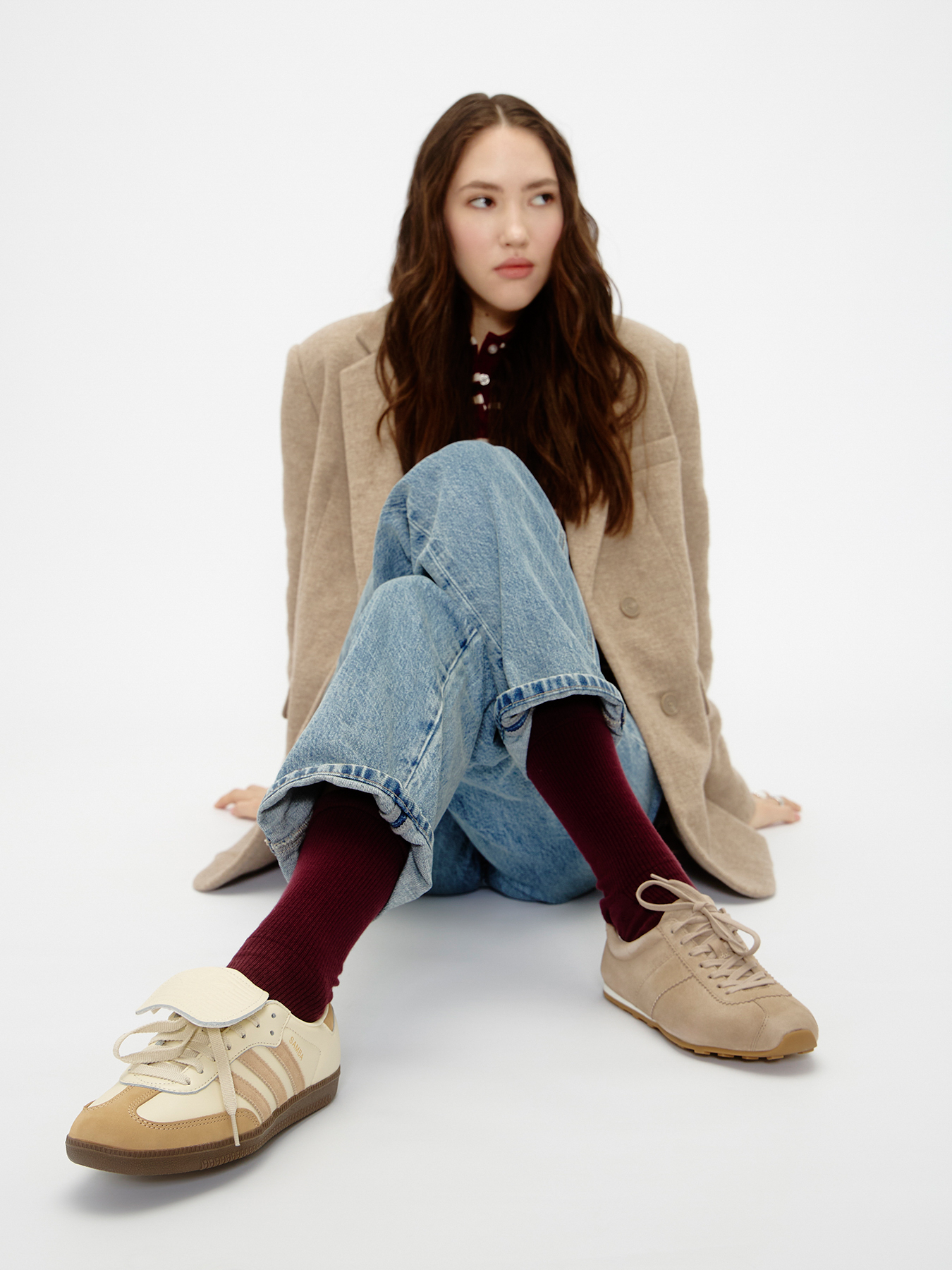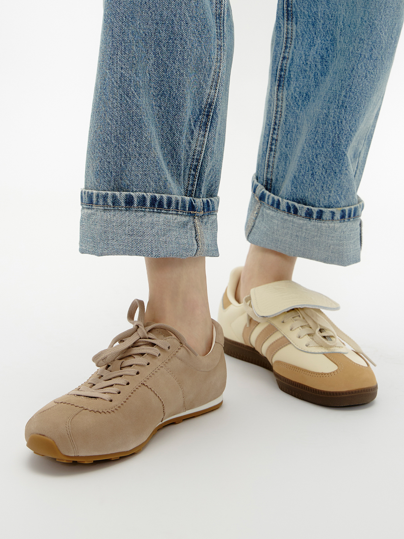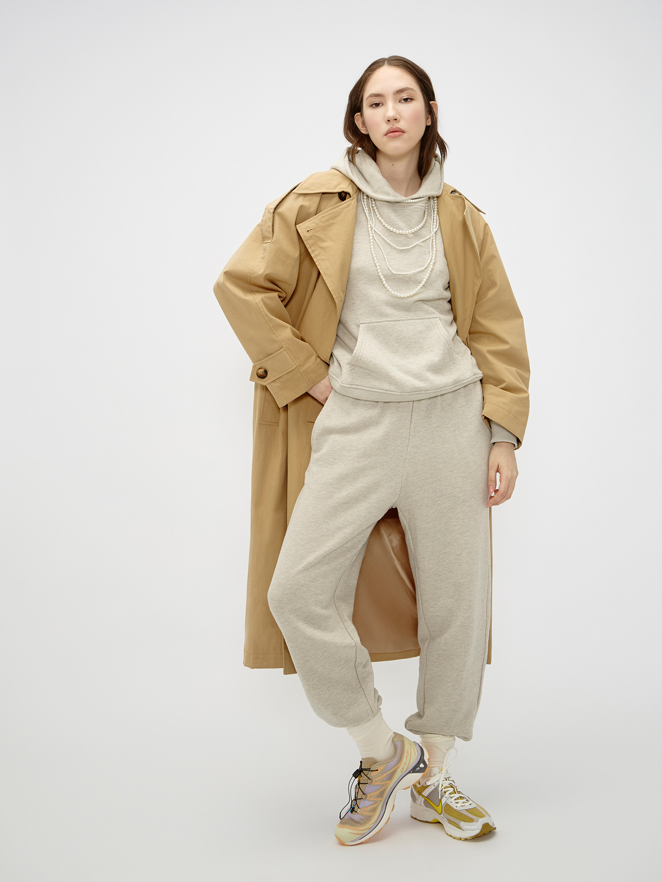 Вайб расслабленности и небрежности должен быть даже в обуви — создать его помогут кроссовки с длинными язычками, которые выглядят так, словно вы забыли их зашнуровать потуже.