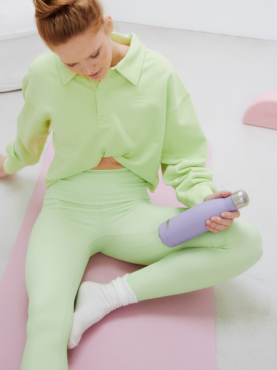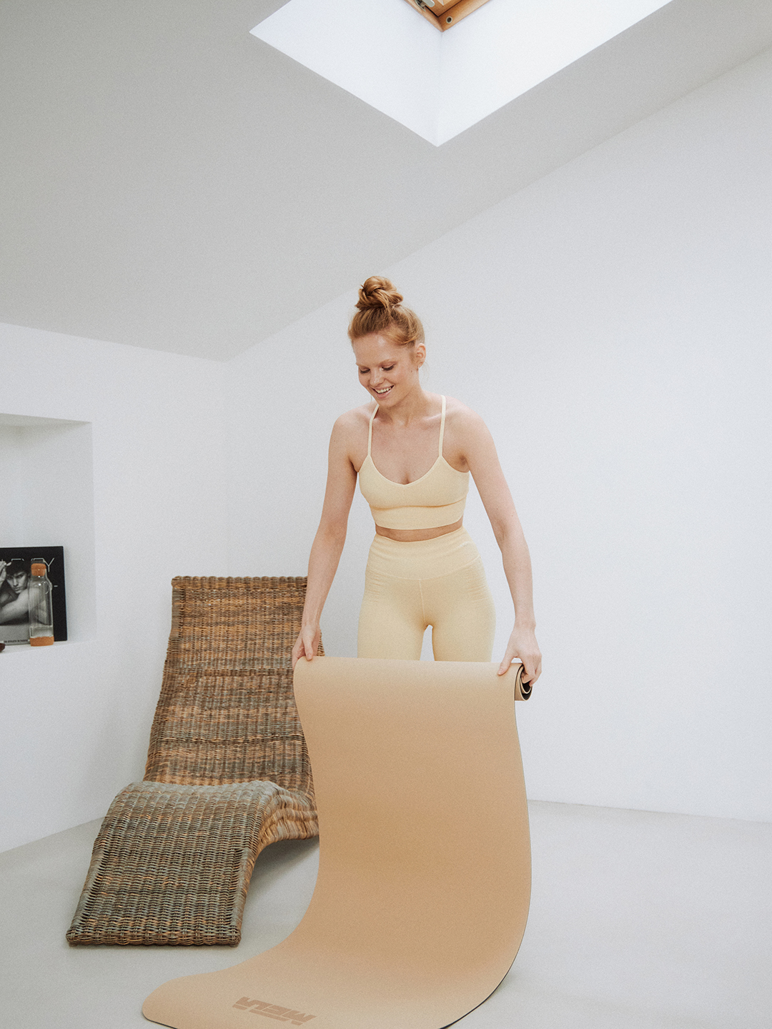 Топ и тайтсы Beself, бутылка Smart Solutions, серьги Call It Spring, носки Sela, часы Roberto Cavalli, коврик для йоги Mela, ароматическая свеча Face Yoga