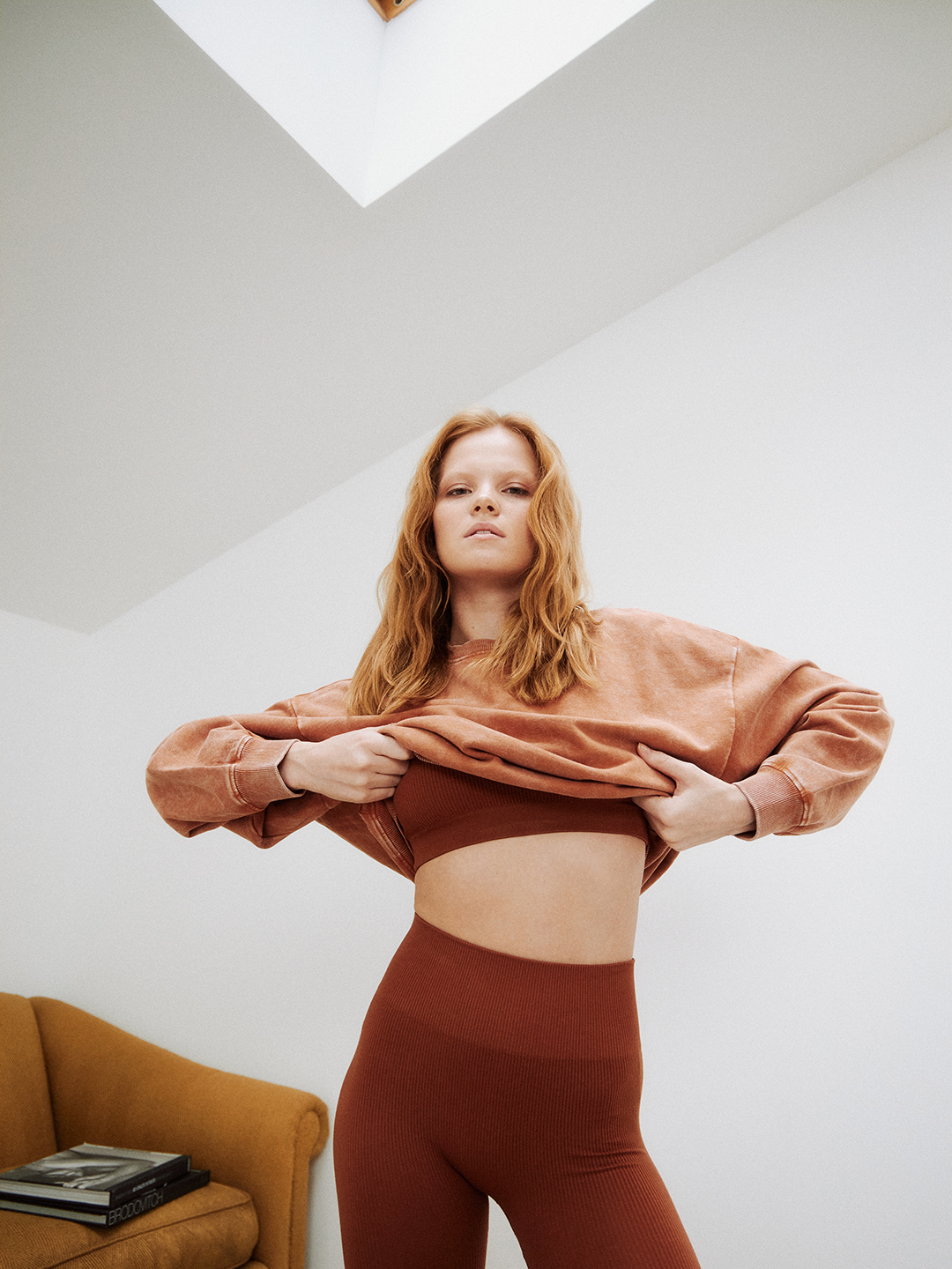 Худи, топ и велосипедки TheJoggConcept, серьги Call It Spring, коврик для йоги и резинки для фитнеса Mela