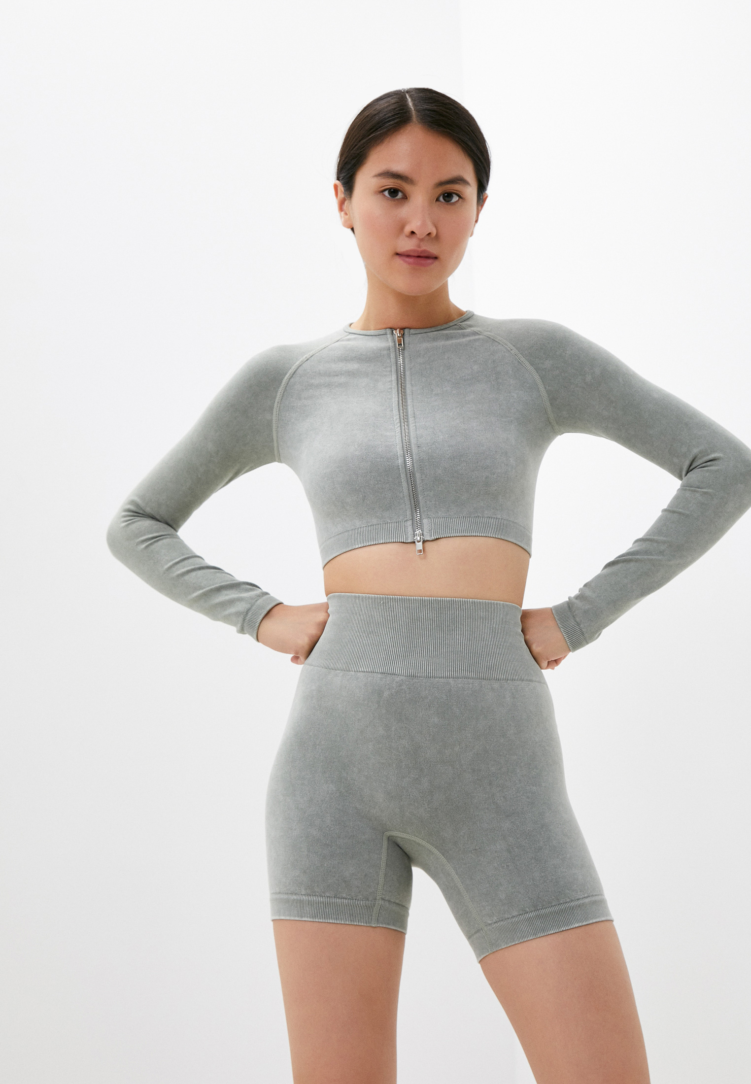 У марки Nativos можно найти трендовые и небанальные комплекты для тренировок в зале или дома. Помимо ярких вариантов с вырезами и принтами, есть и более спокойные версии в природных оттенках. Нам, например, приглянулся этот серо-зеленый комплект с топом на молнии как у зарубежных велнес-инфлюенсеров. Идеально, чтобы отправиться в студию пилатеса с ковриком под мышкой, а потом забежать на утреннюю матчу в кофейню у дома.