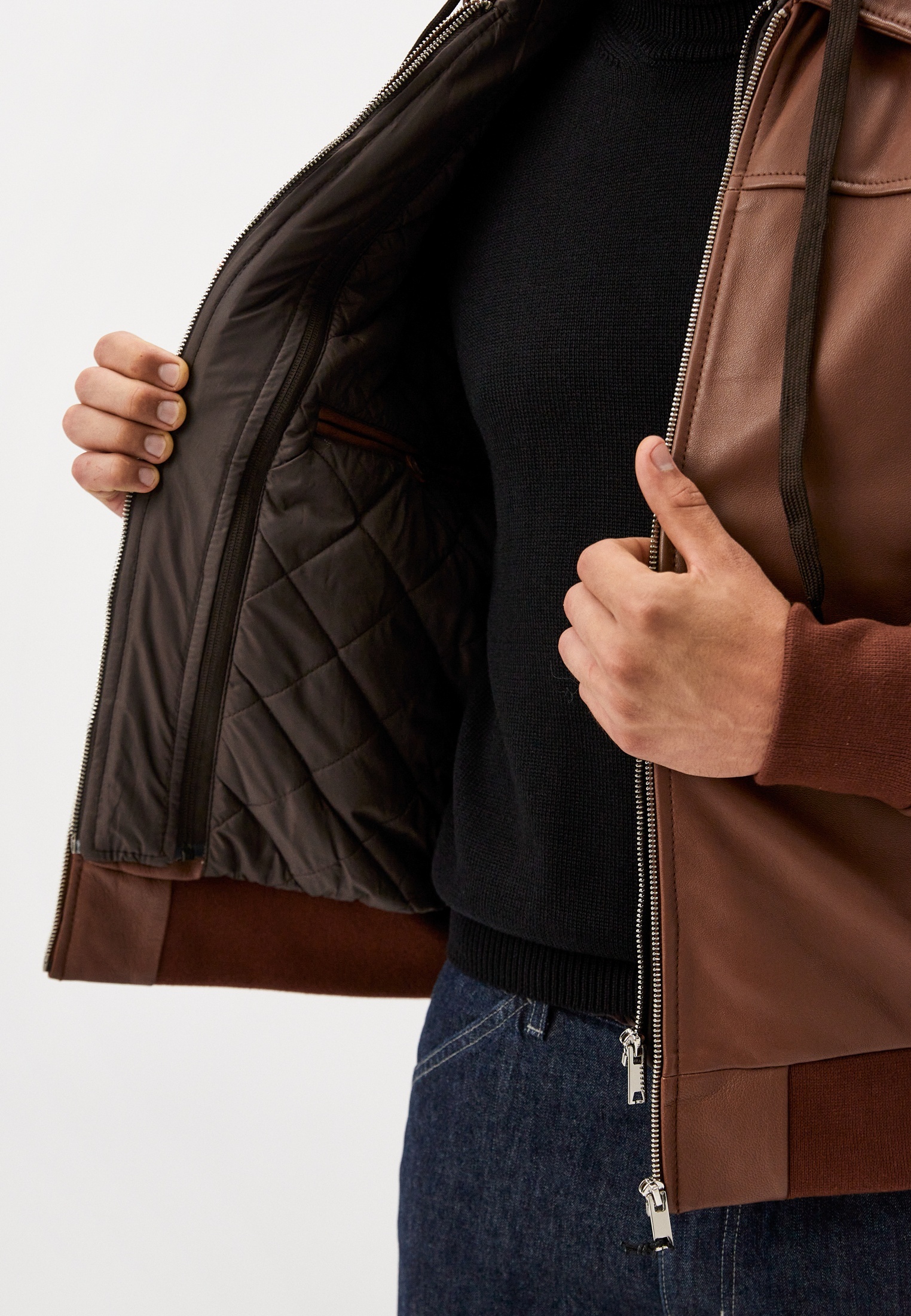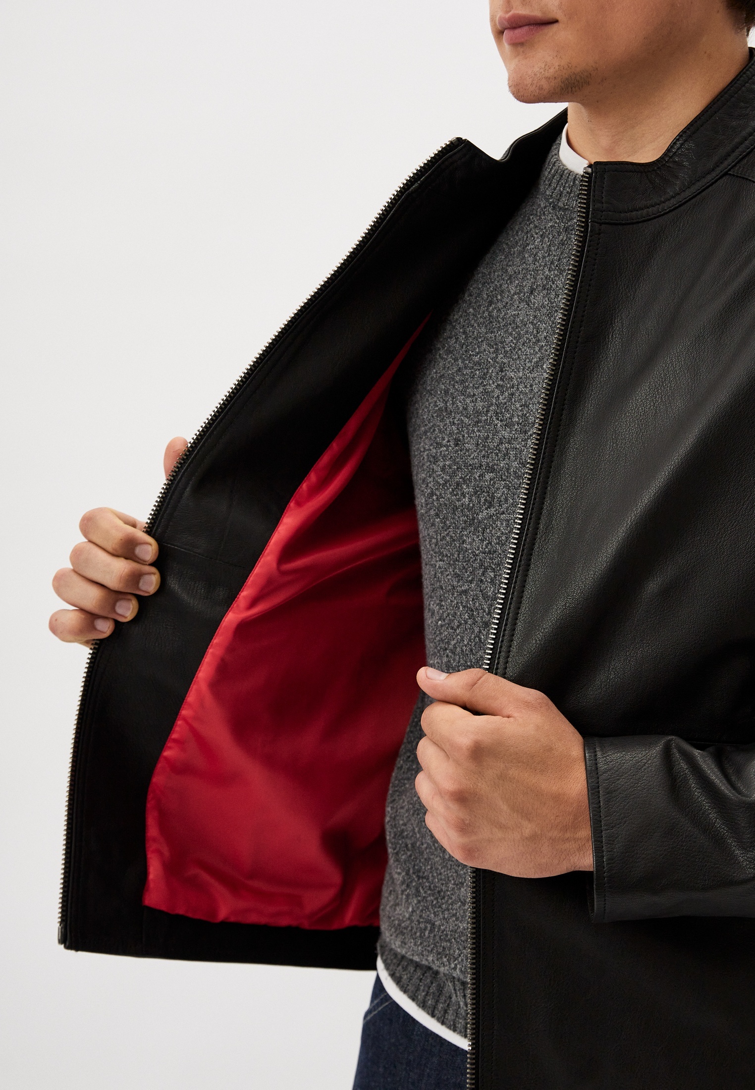 Кожаная куртка никогда не будет лишней в мужском гардеробе. Главное, сочетать ее с ботинками, чтобы собрать полноценный «характерный» образ. А эта алая атласная подкладка — просто вау!