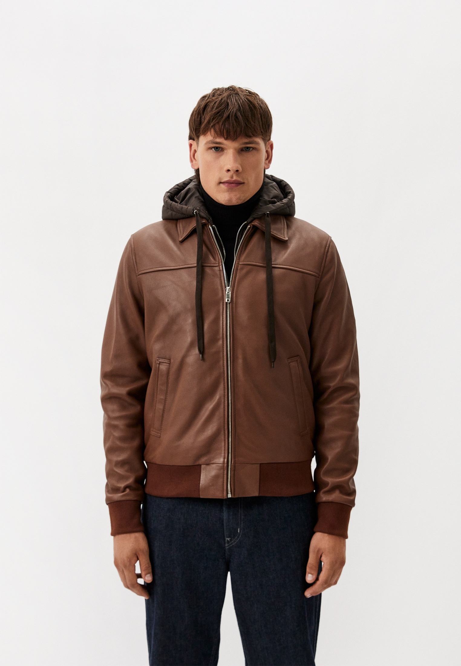 Приятный винтажно-коричневый цвет, хорошая длина, натуральная кожа — по-настоящему образцовый экземпляр косухи. Но назвать ее классический нельзя: отстегивающийся капюшон полностью меняет силуэт, и это действительно круто. Теплый шерстяной свитер, джемпер из кашемира, и вы будете самым модным в этом ноябре!