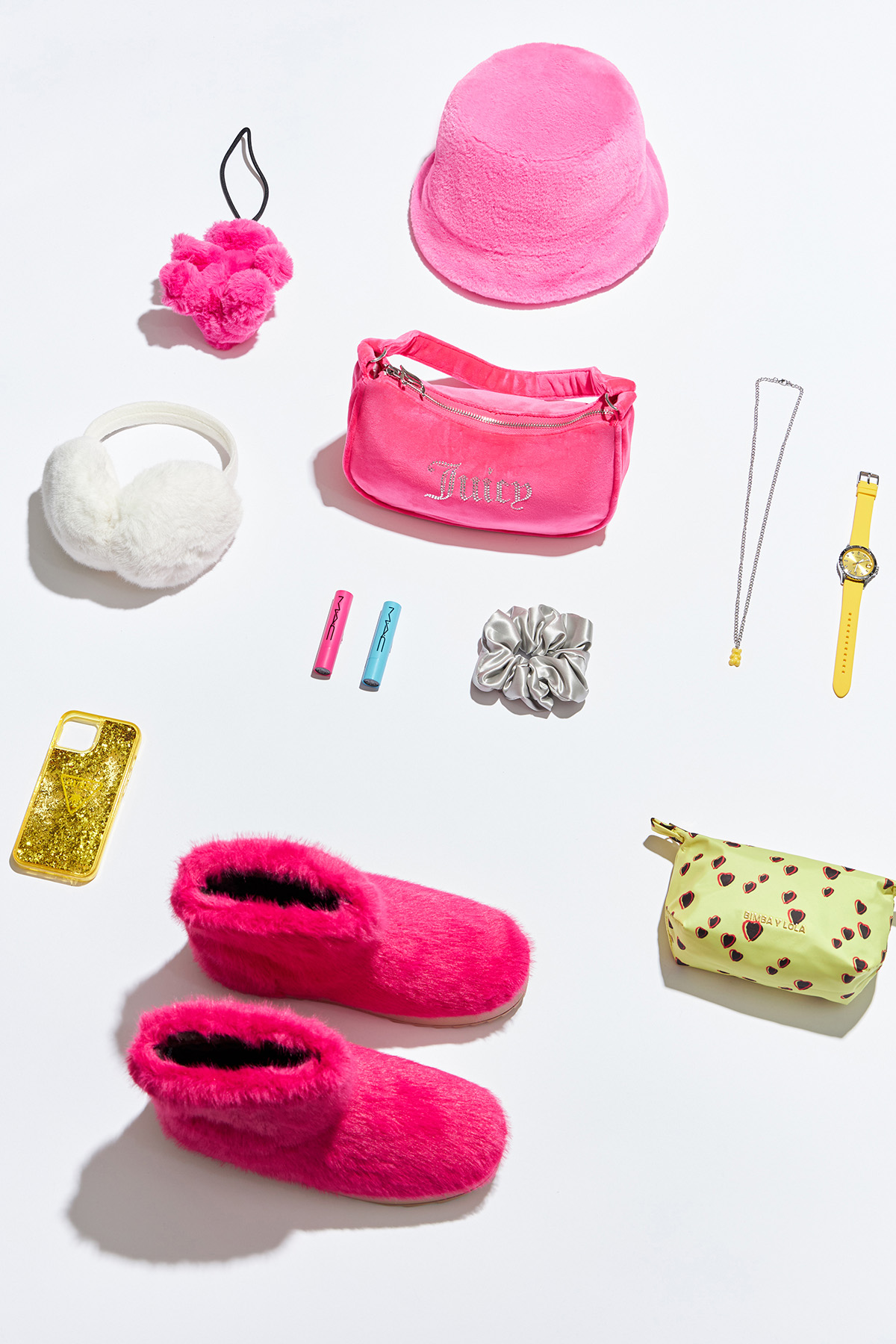 Бальзам для губ MAC, брелок Furla, часы Fossil, колье Pabur, панама Avanta, резинка Assoro, чехол для iPhone Guess, полусапоги Mascotte, бальзам для губ MAC, сумка Juicy Couture, косметичка Bimba Y Lola, наушники Gloria Jeans