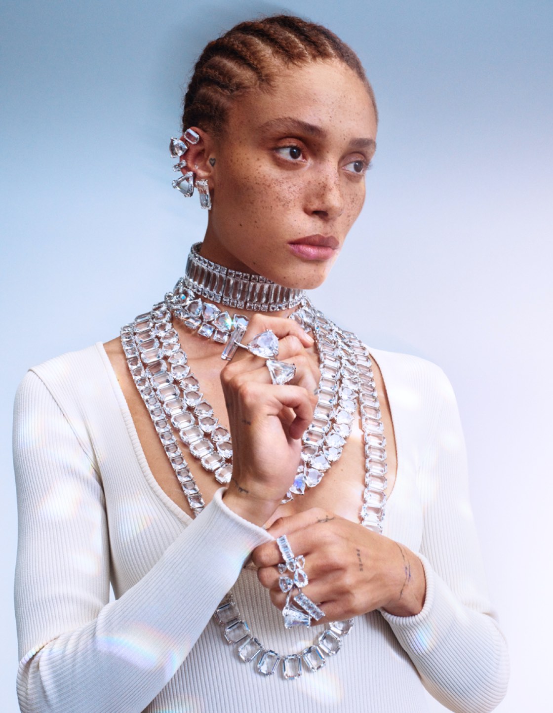 Одним из первых воплощений новой философии бренда можно считать дебютную коллекцию Джованны Батталья-Энгельберг, креативного директора Swarovski Crystal Business.