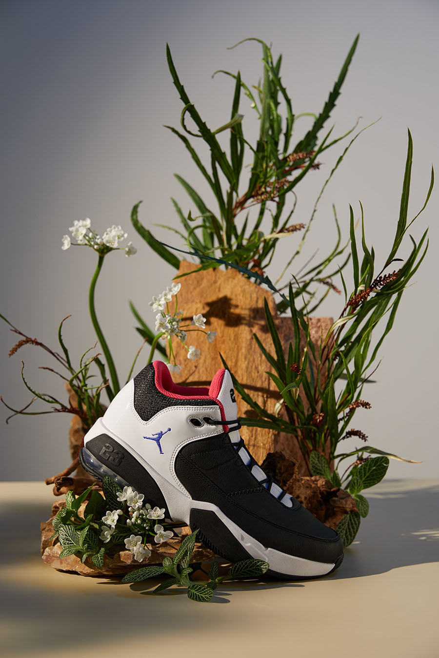 Идея линейки Max Aura — создавать новые модели кроссовок на основе разных моделей Jordan 80-х и 90-х. В новой, третьей, версии легко узнать ранние сникеры Jordan: силуэт — Air Jordan 2, детали и рисунок подошвы от Jordan 9. Для фанатов культовой баскетбольной линейки — мастхэв.