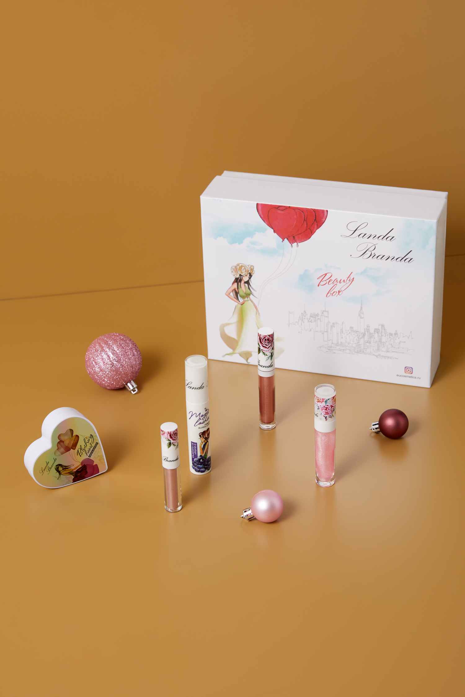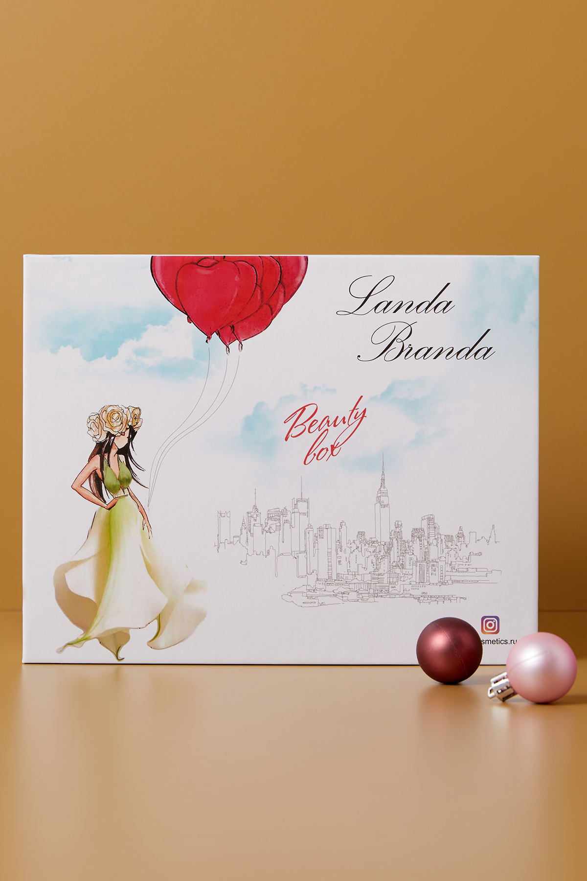 В глянцевом боксе — декоративная косметика молодого шведского бренда. Здесь есть всё для полноценного макияжа, а нюдовые универсальные цвета подойдут и маме, и подружке — можно смело покупать в подарок.