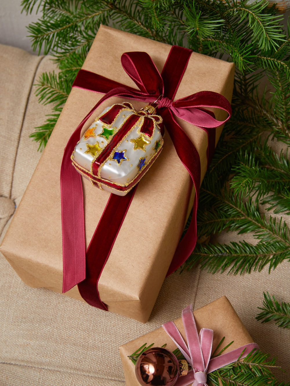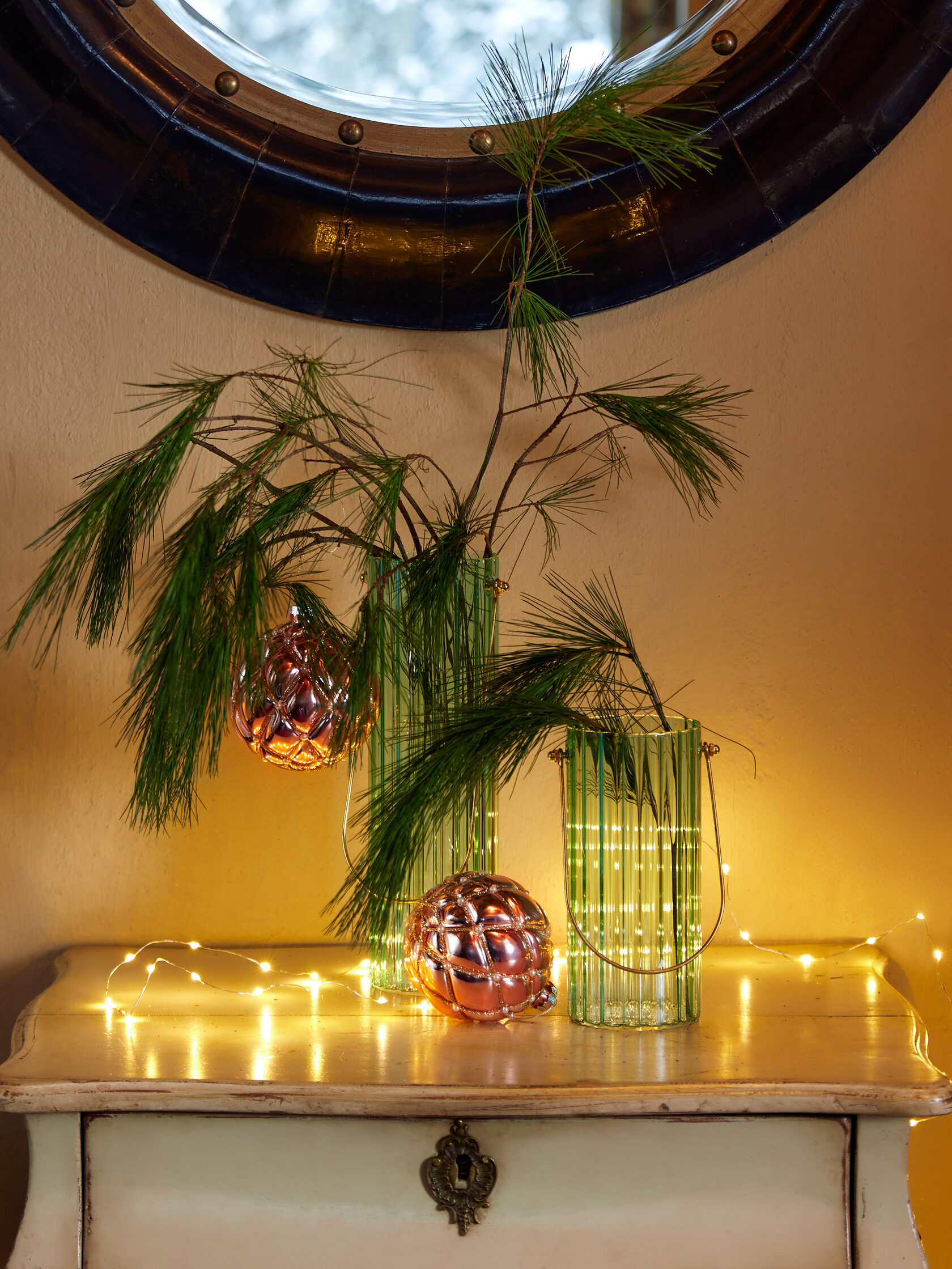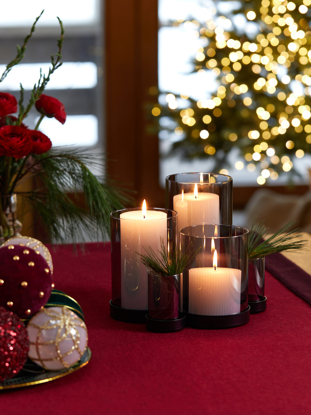 на живую елку, попробуйте украсить пространство хвойными ветками в вазах — аромат праздника появится моментально.