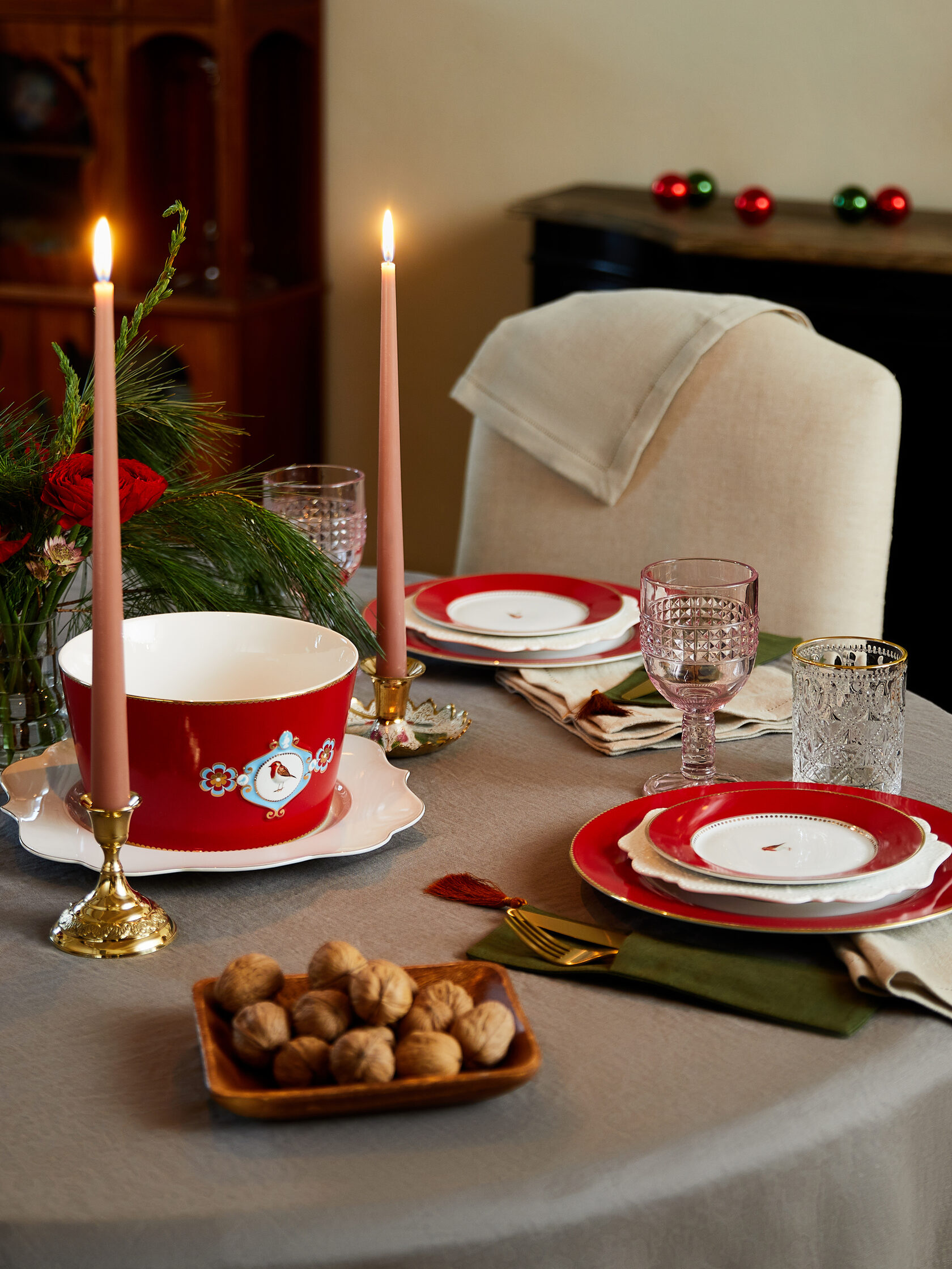 Набор тарелок Pip Studio, набор стаканов Decogallery, подсвечник Just Beauty, подсвечник Just Beauty, набор бокалов Decogallery, салатник Pip Studio, набор текстиля Семейные ценности