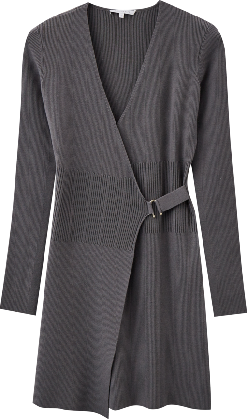 Женственный зимний гардероб — не что-то из области фантастики, а вполне себе реальная задача. Возьмите за основу трикотажное платье-свитер, которое согреет и заодно эффектно подчеркнет изгибы фигуры, и дополните ботильонами на устойчивом каблуке, элегантными аксессуарами и верхней одеждой. Последняя, кстати, может быть как классической, так и более расслабленной — ультратеплый пуховик в конфетном оттенке тоже подойдет.