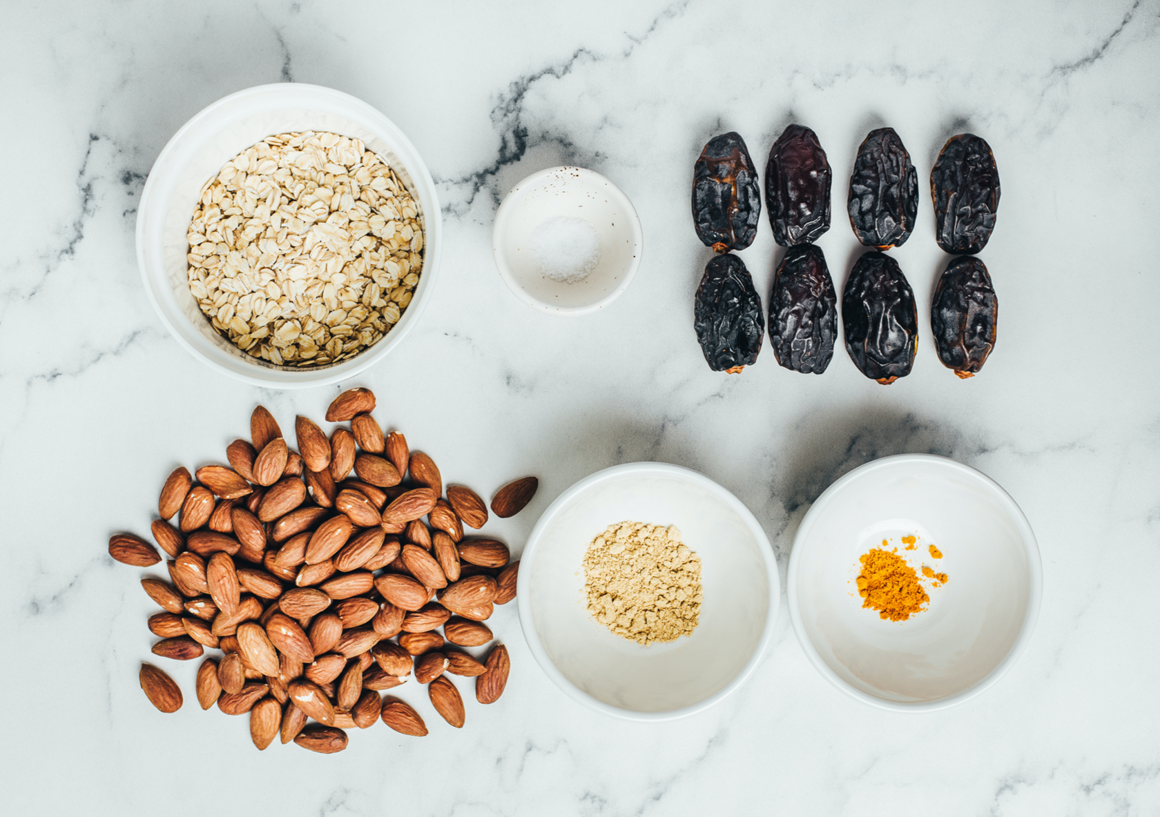 Шарики из орехов и сухофруктов — один из самых простых способов обеспечить себя и своих близких простыми и вкусными перекусами. В этом рецепте сладкие финики, миндаль и овсяные хлопья вкусно сочетаются с имбирем, который добавляет приятную остроту, а также укрепляет иммунитет и улучшает пищеварение. Еще одна специя, которая полезна для иммунитета, — куркума. Ее добавим совсем немного, чтобы она не чувствовалась в конфетах. Миндаль в этом рецепте можно заменить на кешью или грецкие орехи. Если любите поострее, смело увеличивайте количество имбиря.