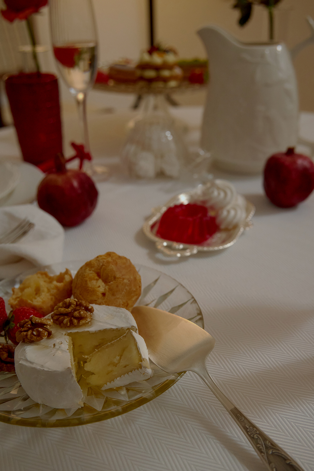 Набор бокалов Walmer, поднос, кулинарная лопатка и набор столовых приборов Кольчугинский мельхиор, тарелка и набор тарелок Liberty Jones, набор стаканов Gipfel, комплект салфеток Bellehome, подставка для торта Coincasa, сахарница и блюдо Walmer, кувшин Elan Gallery, скатерть Home One