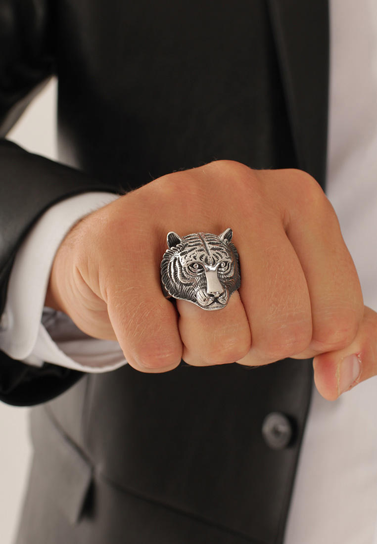 Не особо верим в то, что год Тигра обязательно нужно «уважить» какой-то вещью, но мимо этого кольца пройти не смогли. Украшение с хищником, выполненное из ювелирной стали, выглядит изящно, но моментально привлекает внимание. Носить рекомендуем не только в 2022-м, но и вообще всегда, когда в делах требуется звериная хватка.