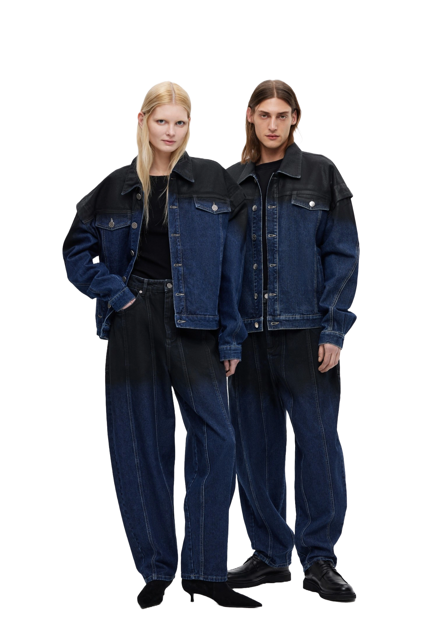 Деним цвета индиго на плечах выглядит как кожаная вставка, но это всего лишь оптическая иллюзия. Куртка выполнена полностью из плотного хлопка, за счет чего отлично сохраняет оверсайз: ткань не деформируется и держит форму. Добавляем в вишлист и вам советуем.