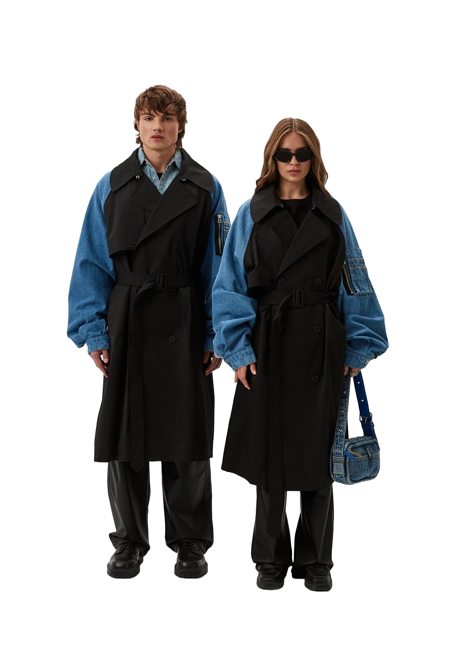 Плащ-конструктор совмещает хлопок и деним. Контрастные рукава свободного кроя сбивают градус с классического на первый взгляд силуэта. И вот уже базовый тренч превращается в нескучную интерпретацию.