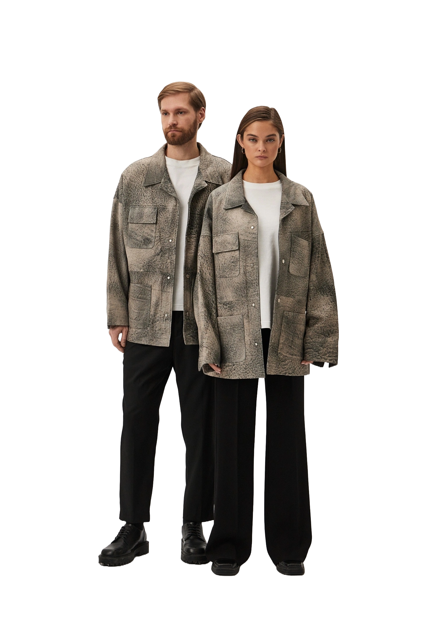 Вообще, кожа с потертым эффектом в стиле винтаж всегда выглядит круто. А когда она сочетается с минималистичным кроем и рубашечным силуэтом — это комбо. Универсальная модель подо всё.