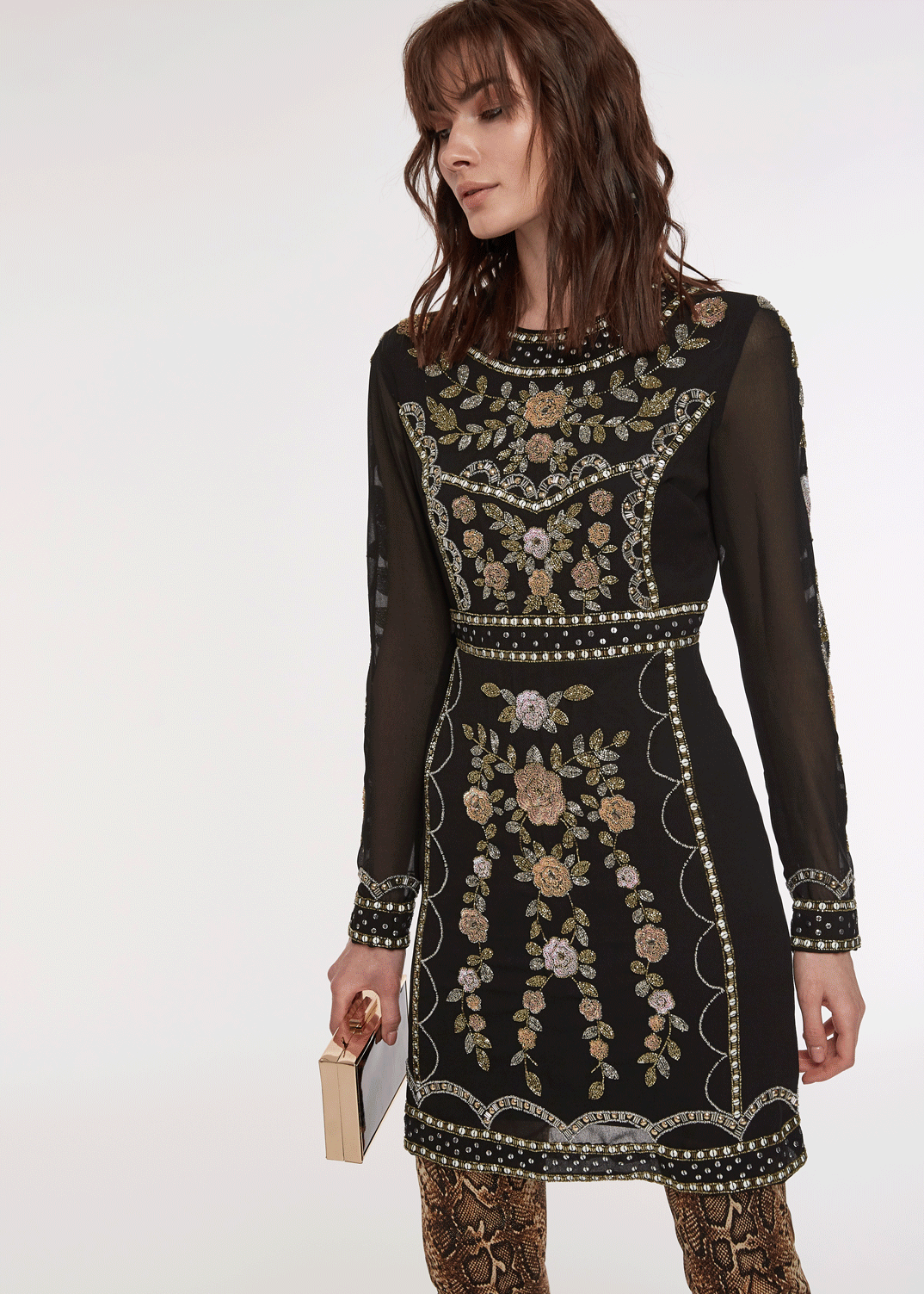 Переливающиеся пайетки — это женские эмоции. Нет ни одной девушки, которая при взгляде на них остается равнодушной. Если вы размышляете над нарядом для вечеринки, то такой, пожалуй, претендует на звание идеального. Днем же сочетайте его с простым свитером и ботинками на плоской подошве. Гармоничная эклектика — все, как мы любим!