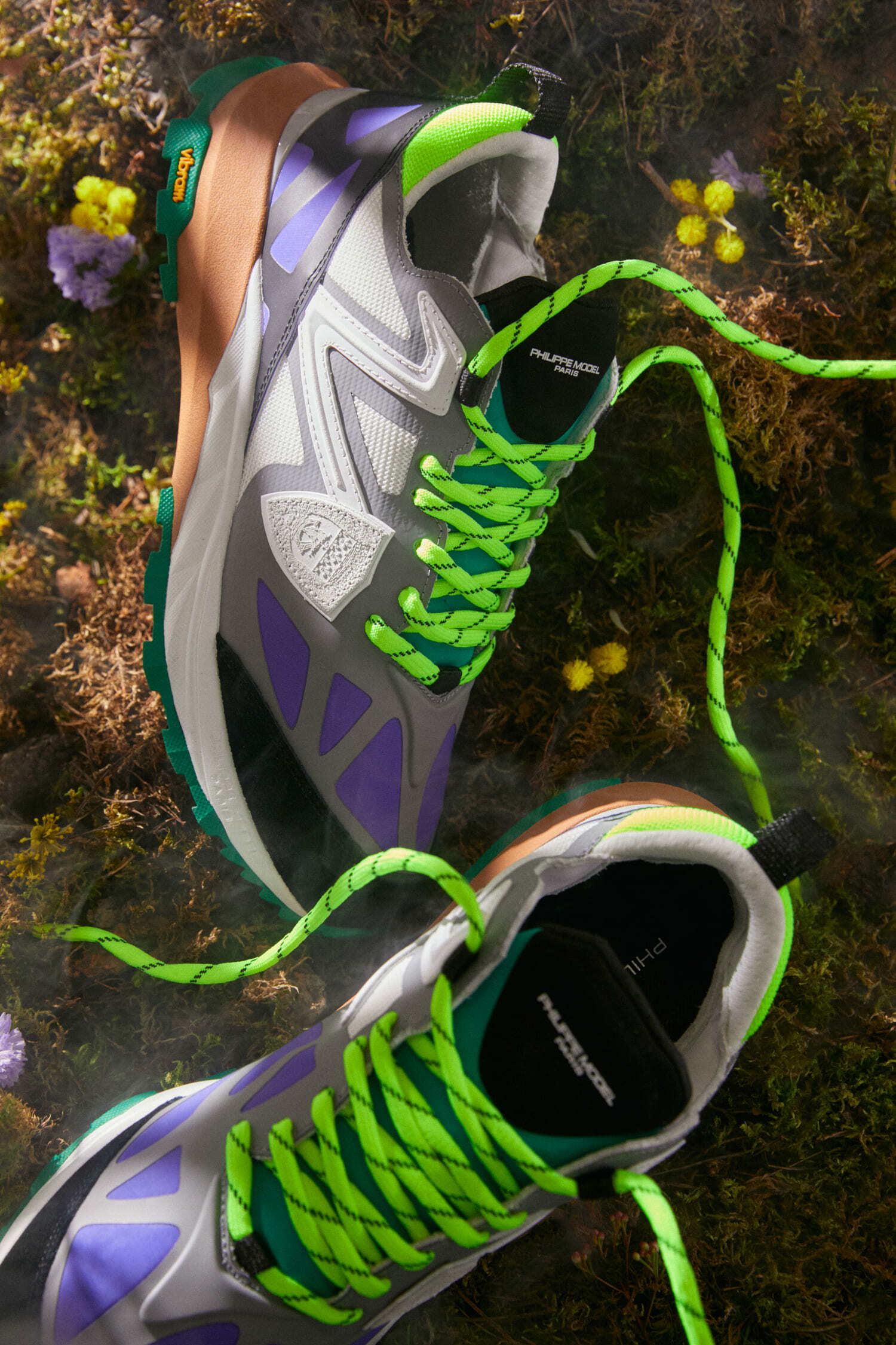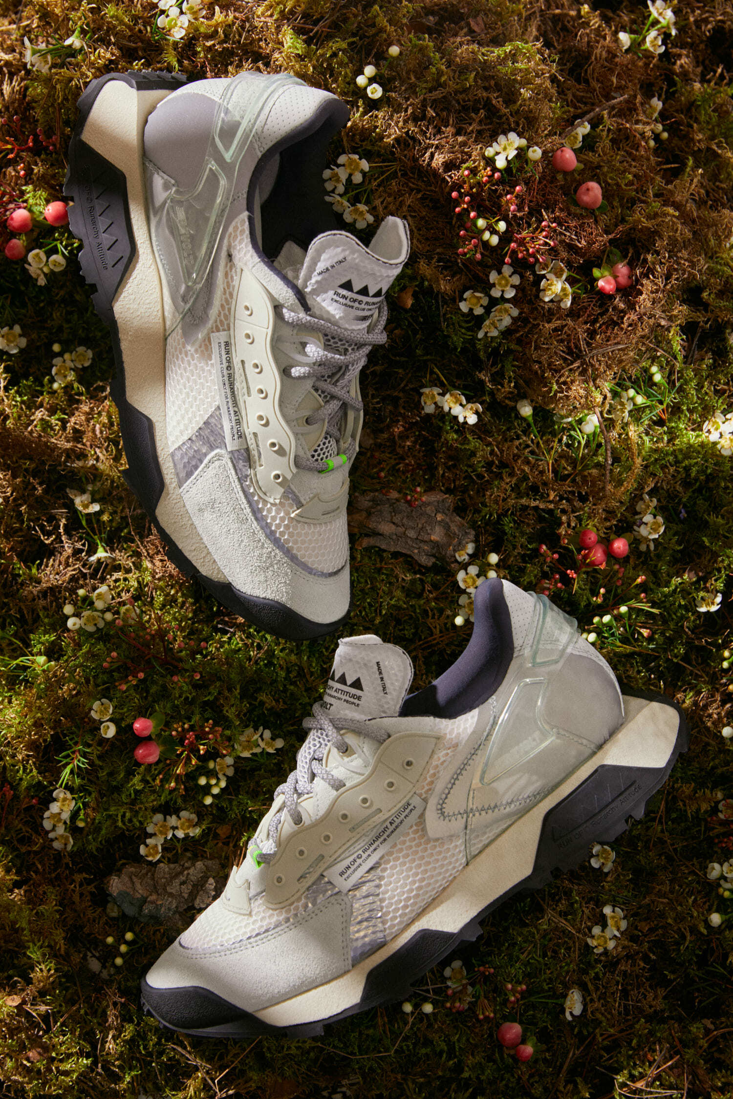 Фишка бренда — каждая пара производится вручную в Италии. На сайте марки можно даже посмотреть, где сделаны шнурки или коробка для обуви. Дизайн силуэта вдохновлен беговыми сникерами 90-х годов, которые мы узнаем по сочетанию дышащей сетки и замши, массивной подошве и ярким деталям.