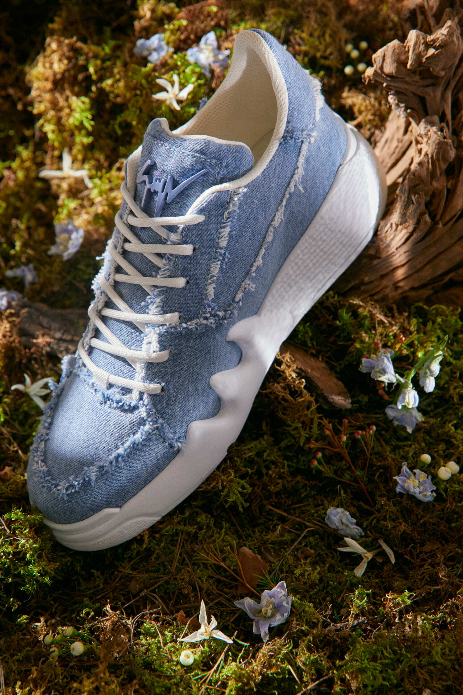 Силуэт от известного дизайнера, который создавал обувь для Мадонны, Леди Гаги и других мировых знаменитостей. За основу взяли баскетбольные сникеры 80-х годов, верх сделали из денима и установили на фирменную подошву Giuseppe Zanotti. В результате получились кроссовки, которые одинаково хорошо будут смотреться и со спортивными, и с классическими брюками.