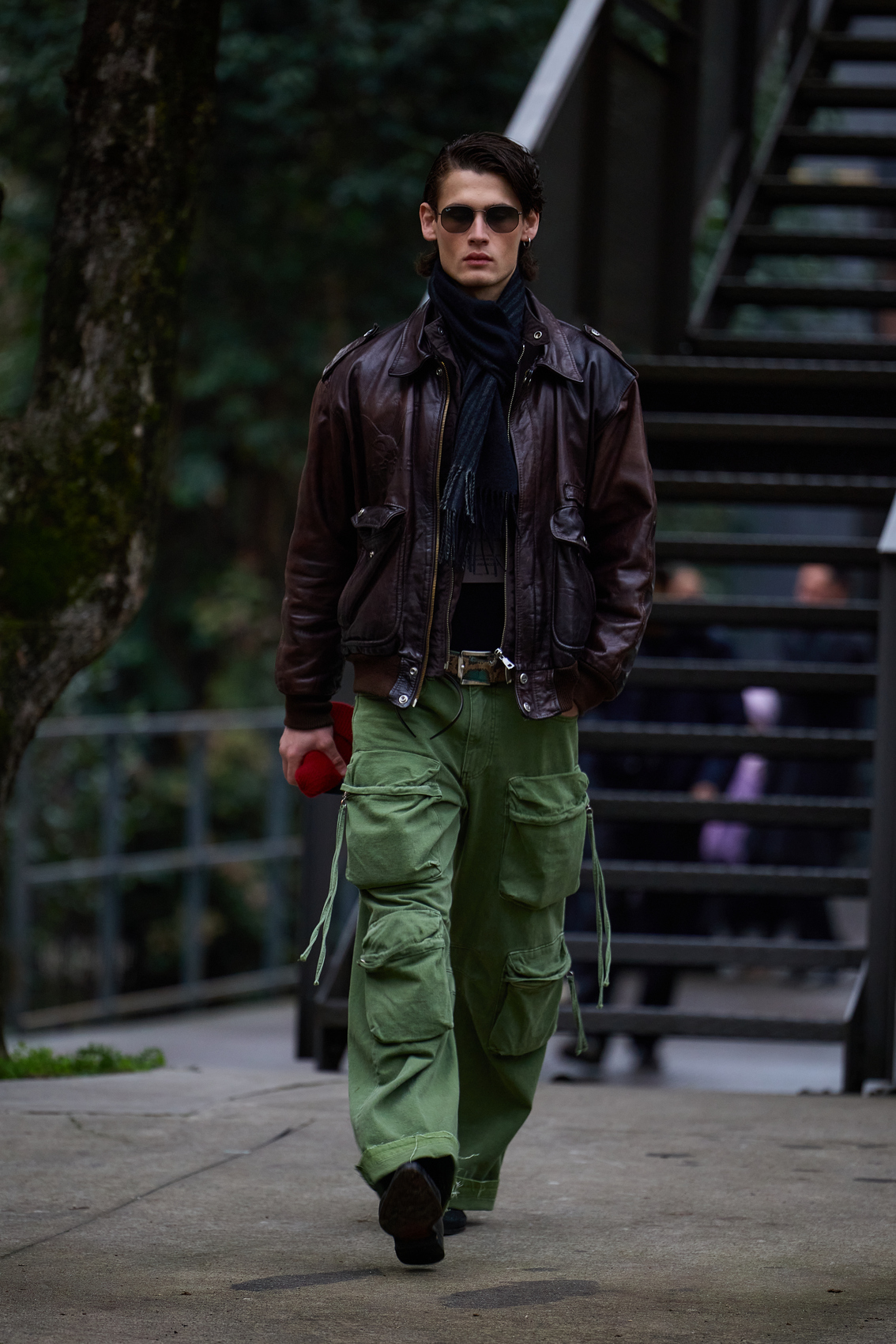 Спортивные костюмы можно заменить не менее практичными брюками карго в сочетании с мягким трикотажем. Не забудьте дополнить образ полезными аксессуарами: например, теплым шарфом и очками от солнца (ведь с каждым днем его становится всё больше).