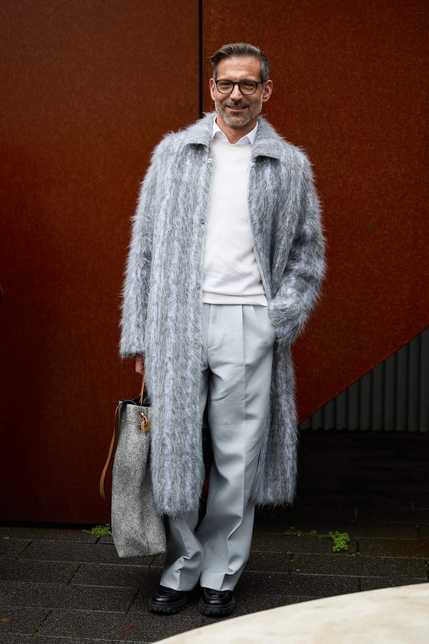 Свежесть белого воротничка отлично подчеркнет такой же белоснежный джемпер из мягкого кашемира. Вместо строгого черного низапредлагаем выбрать серую палитру, а классическое пальто в пол заменить на более уютные и даже пушистые модели.