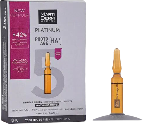 Бренд MartiDerm — один из самых известных среди ампульных. Эта сыворотка направлена на уменьшение следов фотостарения, то есть старения кожи от воздействия ультрафиолета.