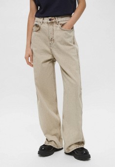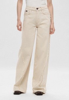 Бежевые женские широкие и расклешенные джинсы премиум класса