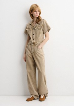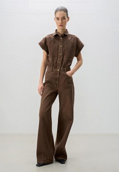 Коричневые женские джинсовые комбинезоны
