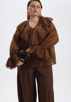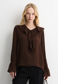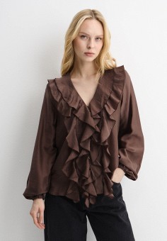 Коричневые женские блузы с рюшами и воланами