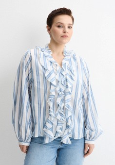 Женские блузы с рюшами и воланами в полоску