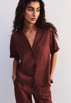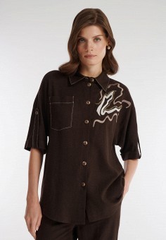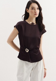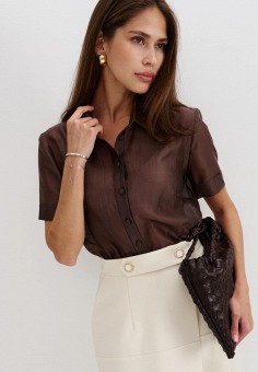 Коричневые женские блузы с коротким рукавом