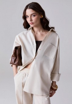Бежевые женские рубашки с длинным рукавом