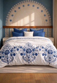 Синие семейное постельное белье