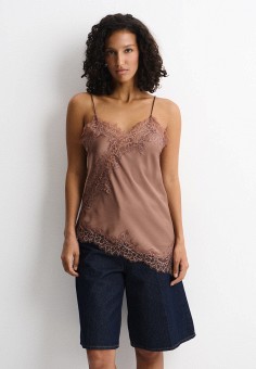 Коричневые женские топы в бельевом стиле