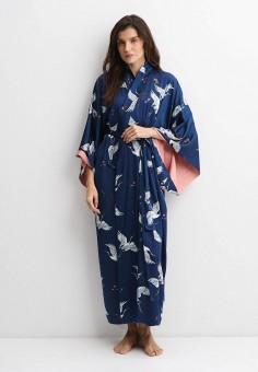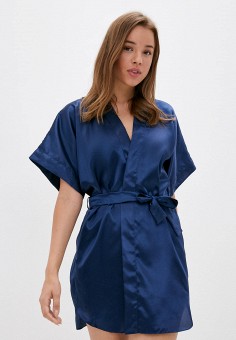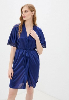 Синие женские атласные и кружевные халаты
