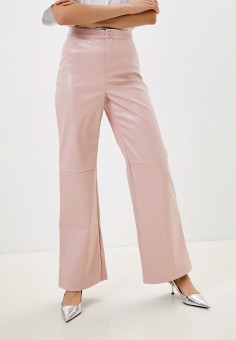 Розовые женские кожаные брюки