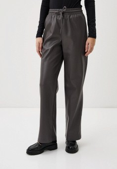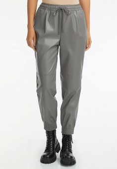 Серые женские кожаные брюки