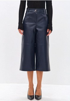 Синие женские кожаные брюки
