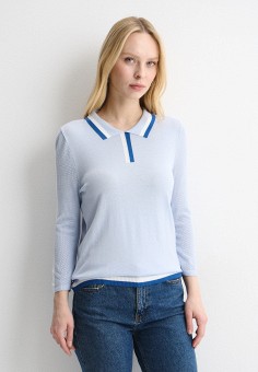 Голубые женские свитеры с воротником поло