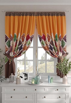 Оранжевые шторы из текстиля