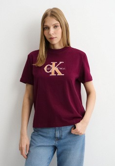 Бордовые женские футболки и поло Calvin Klein Jeans