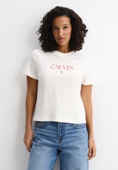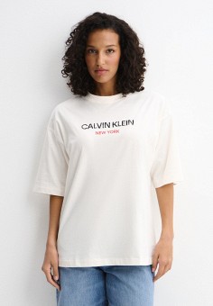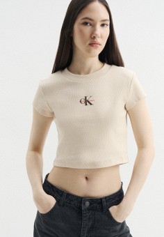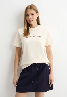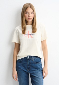 Бежевые женские футболки и поло Calvin Klein Jeans