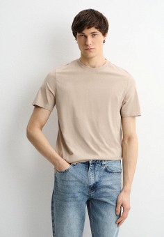 Бежевые мужские футболки с коротким рукавом Koton