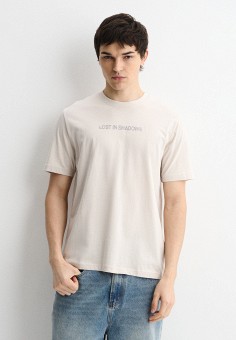 Бежевые мужские футболки с коротким рукавом O'STIN