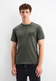 Хаки мужские футболки с коротким рукавом Replay