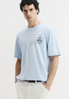Голубые мужские футболки с коротким рукавом Hugo