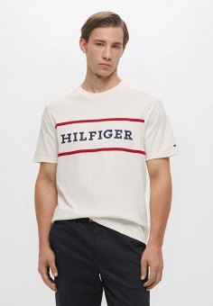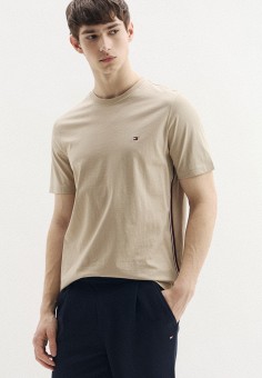 Бежевые мужские футболки с коротким рукавом Tommy Hilfiger