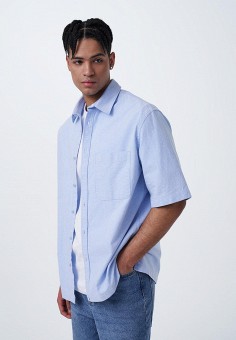 Голубые мужские рубашки с коротким рукавом O'stin