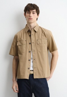 Коричневые мужские рубашки с коротким рукавом Zolla